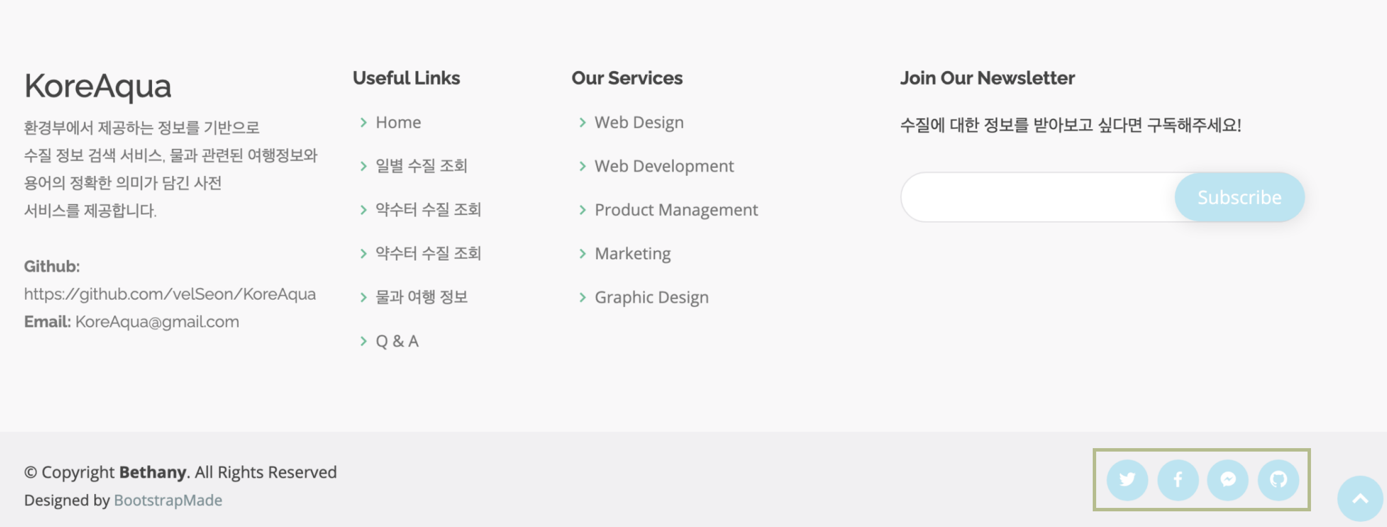 공공데이터 포털의 정보 조회 서비스 (상수도법정수질정보 조회,지방상수도 수질,광역정수장 수질,물과 여행 정보,물 백과사전 정보,가뭄 뉴스정보)의 데이터를 파싱하여 데이터 활용함. 클라이언트가 보기 쉽게 Java Script와 CSS를 활용하여 페이지의 화면을 구성하고, ajax의 비동기처리와 페이징 처리를 이용해 정보조회를 쉽게 할 수 있도록 웹사이트를 제작하였다.
